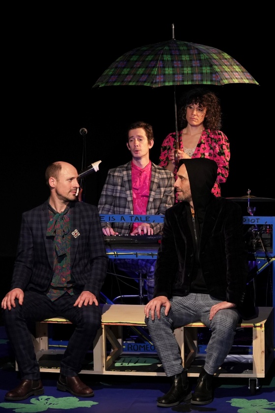 Le monde entier est un théâtre, écrit Shakespeare, et c’est dans son théâtre que trois comédien-nes et un musicien s’élancent pour imaginer son monde, avec pour seul espoir le souffle de vos bienveillants murmures. Sinon, ils auront manqué leur but : vous plaire.