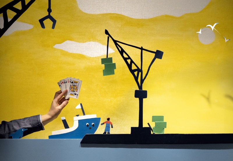 Mais au fait, que peuvent bien contenir les grosses boîtes qu’il a sur le dos ? Le seul à le savoir est Monsieur Moustache, le patron, qui les attend sur le quai en regardant sa montre…